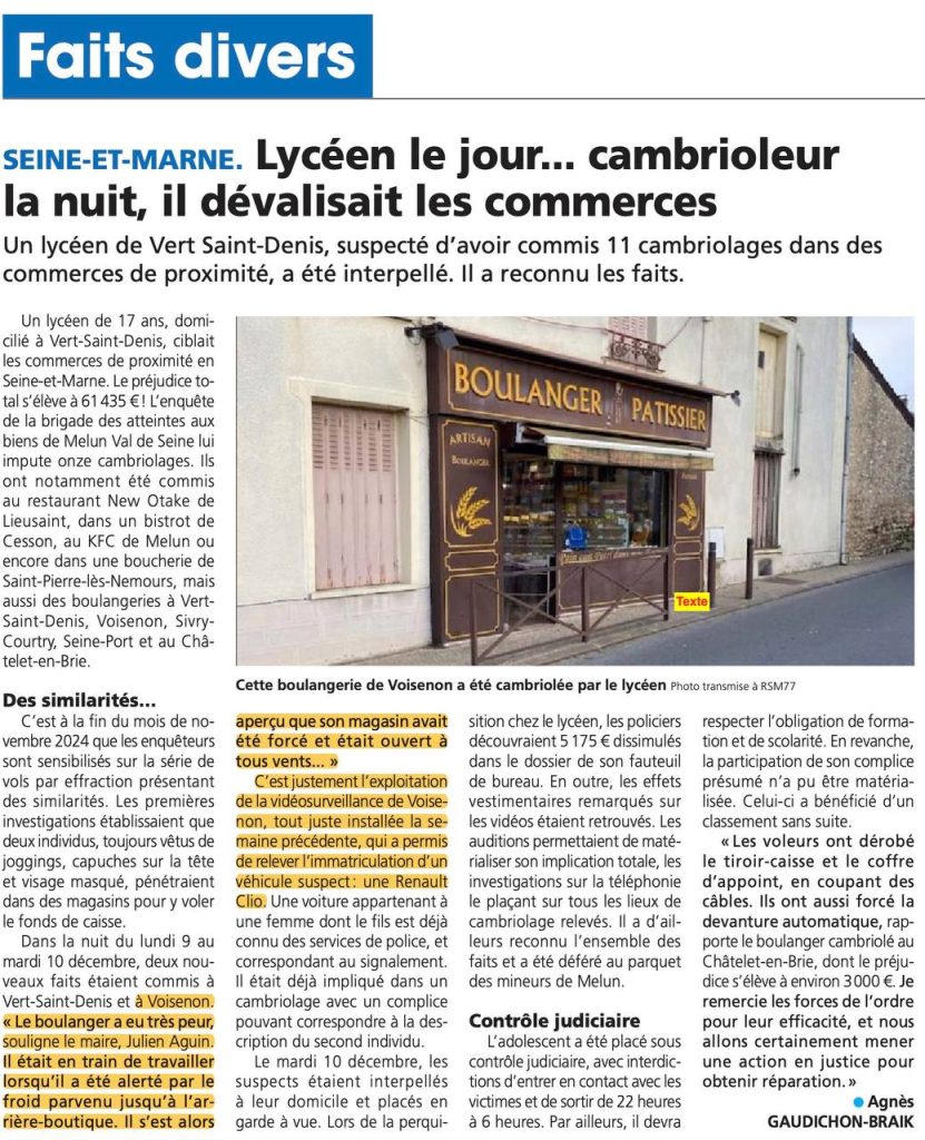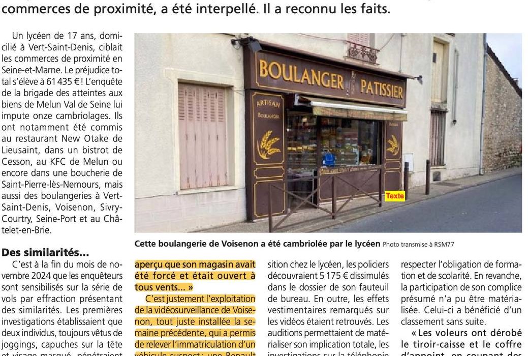 La République de Seine-et-Marne du lundi 16 décembre 2024. Mise en place de la Vidéoprotection dans le village.