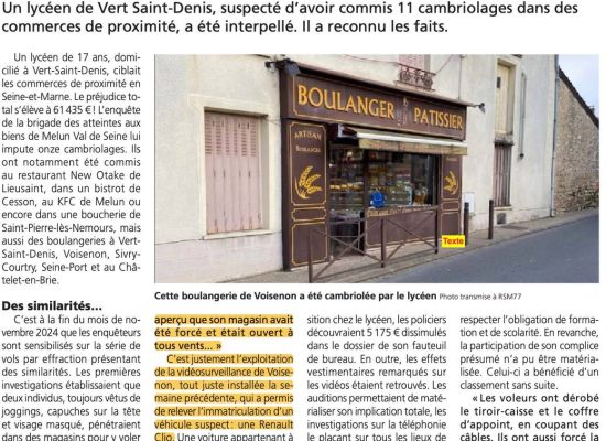 La République de Seine-et-Marne du lundi 16 décembre 2024. Mise en place de la Vidéoprotection...